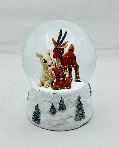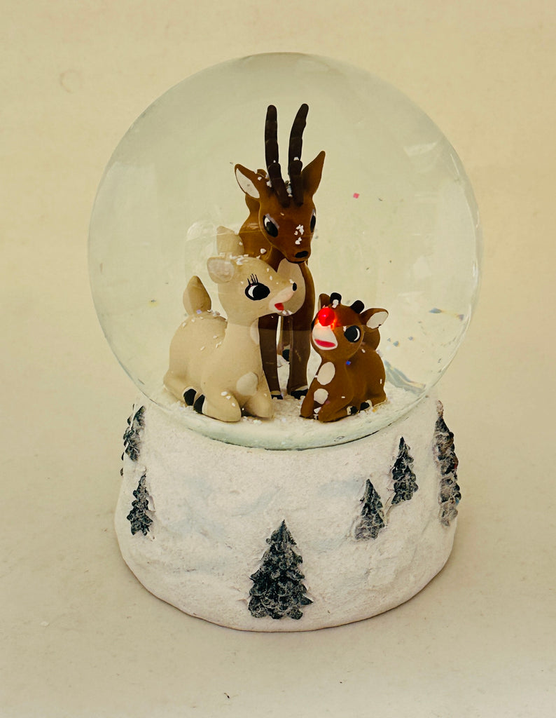 Rudolph the Red Nosed Reindeer is with his parents Donner & Mrs. Donner. His nose lights up! There is an on/off switch and 3 AA batteries required. You can have the music & Nose light up or just the nose. Measures 6 x 4 and playing the ever famous tune: Rudolph the red nose reindeer.