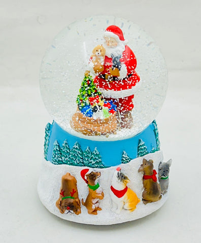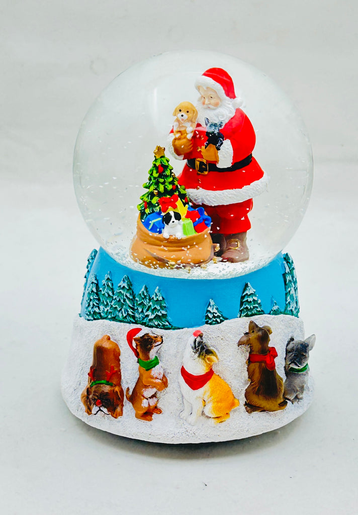 For that Dog Lover, Musical Puppies w/Santa. Playing the tune: We Wish You a Merry Christmas. Made of Resin and Glass and measures 4.75 x 3.5 80mm dome